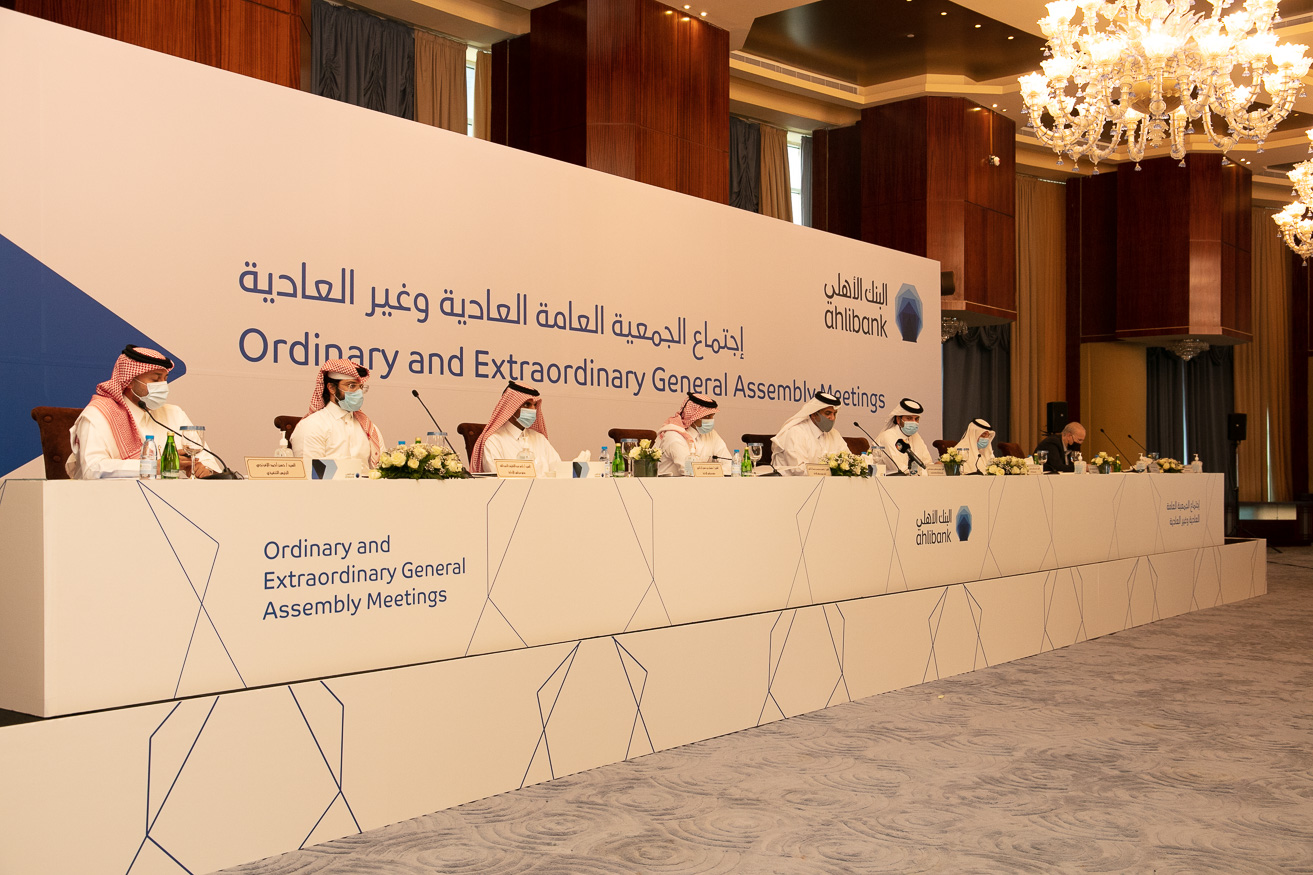 : عقد البنك الأهلي اجتماع جمعيته العمومية العـادية وغير العادية برئاسة الشّيخ فيصل بن عبد العزيز بن جاسم آل ثاني، رئيس