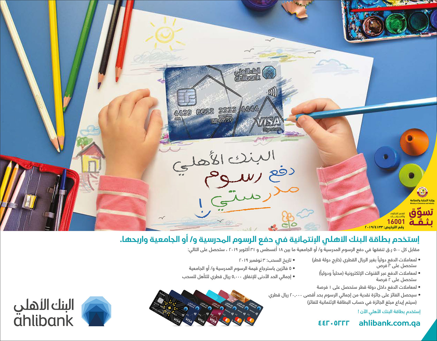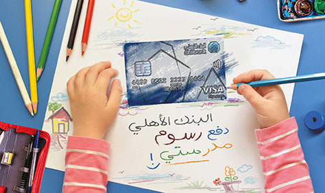 إستخدم بطاقة البنك الأهلي الإئتمانية في دفع الرسوم المدرسية و/ أو الجامعية واربحها.