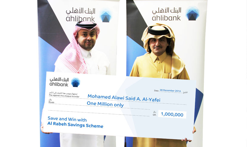 Ahlibank’s Al Rabeh Savings Scheme QAR 1 Million Prize Draw winner for Q4 2016 has been named as Mr. Mohamed Alawi Said A. Al-Yafei. The draw was conducted under the presence of the Ministry of Economy and Commerce.