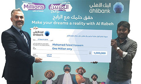 Ahlibank’s Al Rabeh Savings Scheme first draw for QAR 1 Million prize for March 2019 is Mr. Mohamed Faizal Haseem. The draw was conducted under the presence of the Ministry of Economy and Commerce and Ahlibank officials.