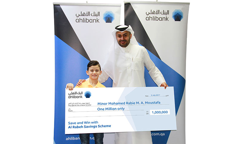 Ahlibank’s Al Rabeh Savings Scheme QAR 1 Million Prize Draw winner for Q2 2017 has been named as Minor Mohamed Rabei M A Moustafa. The draw was conducted under the presence of the Ministry of Economy and Commerce.