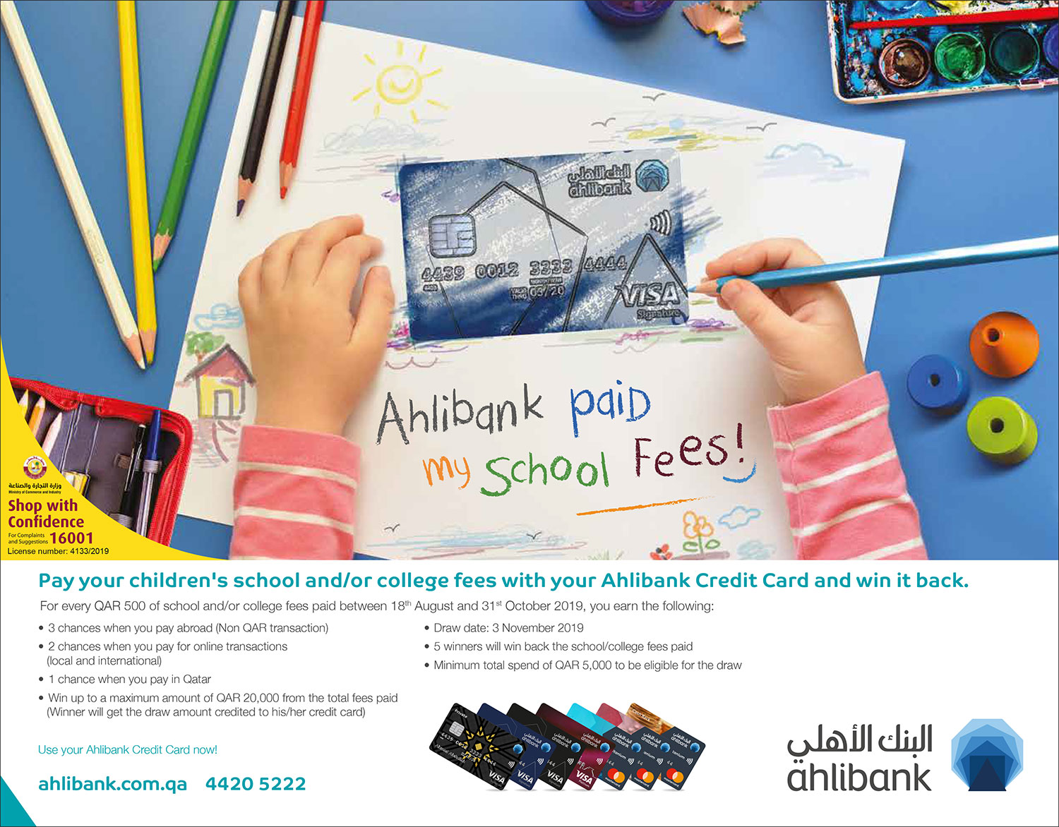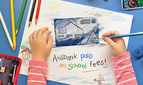 Pay your children's school and/or college fees with your Ahlibank Credit Card and win it back.
