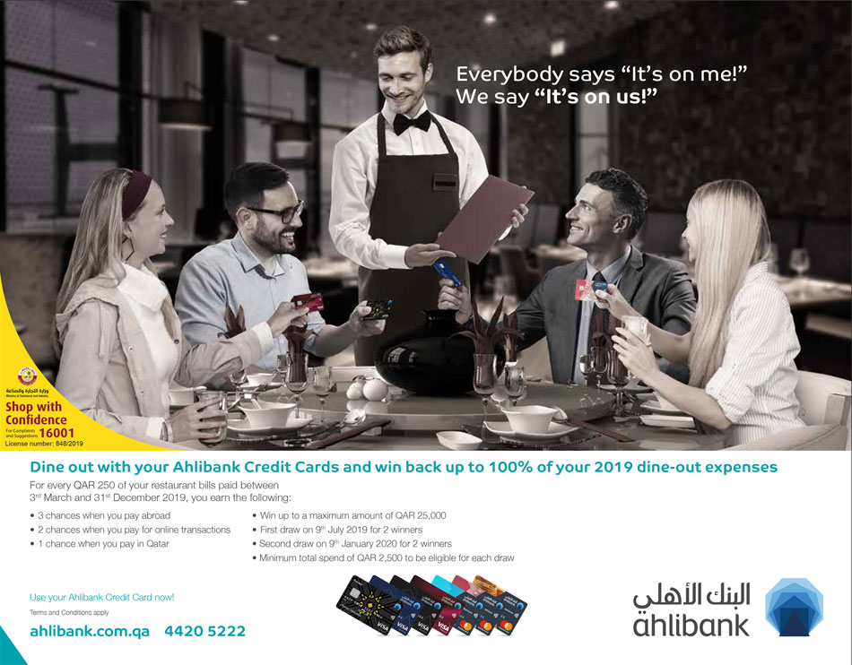 Dine out with your Ahlibank Credit Cards and win back up to 100% of your 2019 dine-out expenses